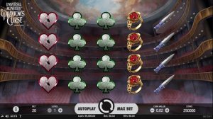 Universal Monsters: The Phantom’s Curse er en spilleautomat med flere symboler. Så klart vil du legge merke til Operafantomet, og som vi nevnte tidligere er Christine med. Men du vil også legge merke til en dolk, et speil, en gylden rose og en ring med en rød edelsten. Symbolene i Universal Monsters: The Phantom’s Curse utbetaler forskjellig og vi tenkte vi kunne fortelle deg akkurat hva de utbetaler. Hvor mye symbolene utbetaler kommer også helt an på hvor mange som dukker opp på hjulene. Hvis det dukker opp 3 av et identisk symbol blir det en viss sum, hvis det blir 4 blir det en annen sum og hvis det blir 5 blir det så klart den største summen symbolet kan by på.